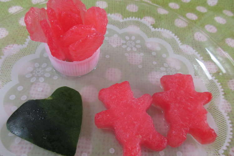 飾り切り 型抜きで簡単 スイカのバラの花 レシピ 作り方 By ちょこ クックパッド 簡単おいしいみんなのレシピが357万品